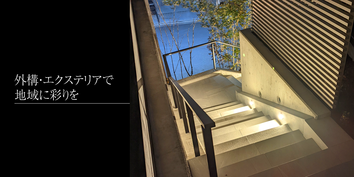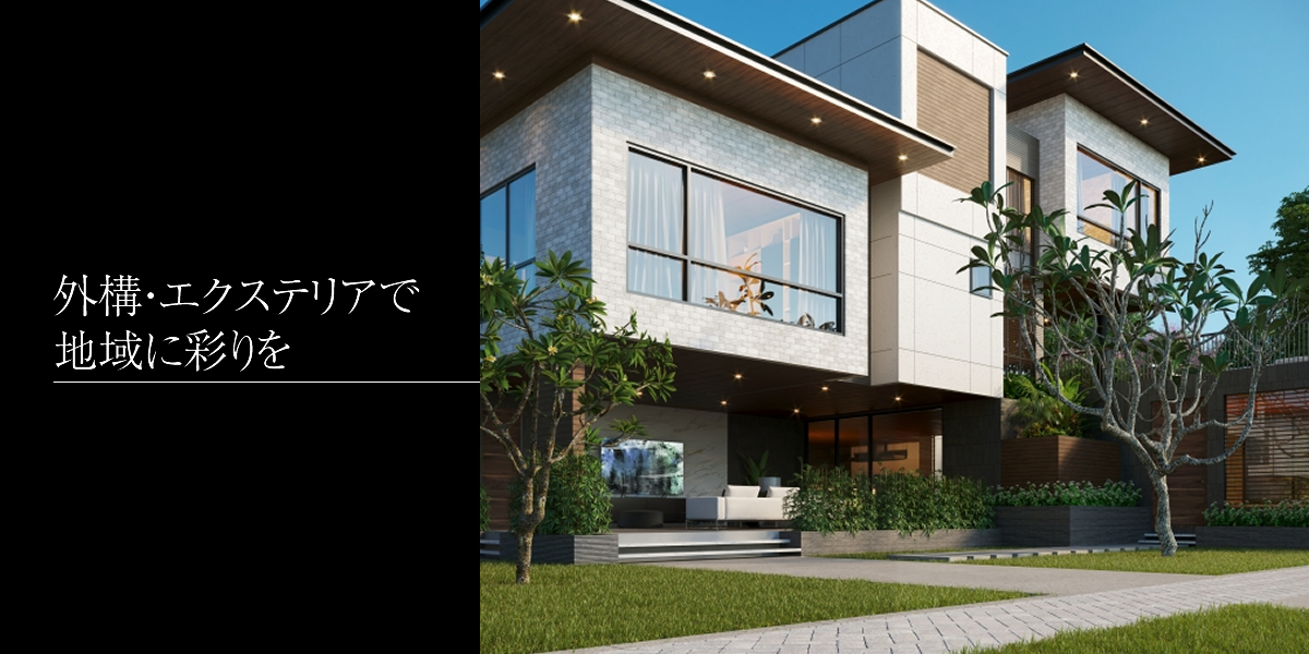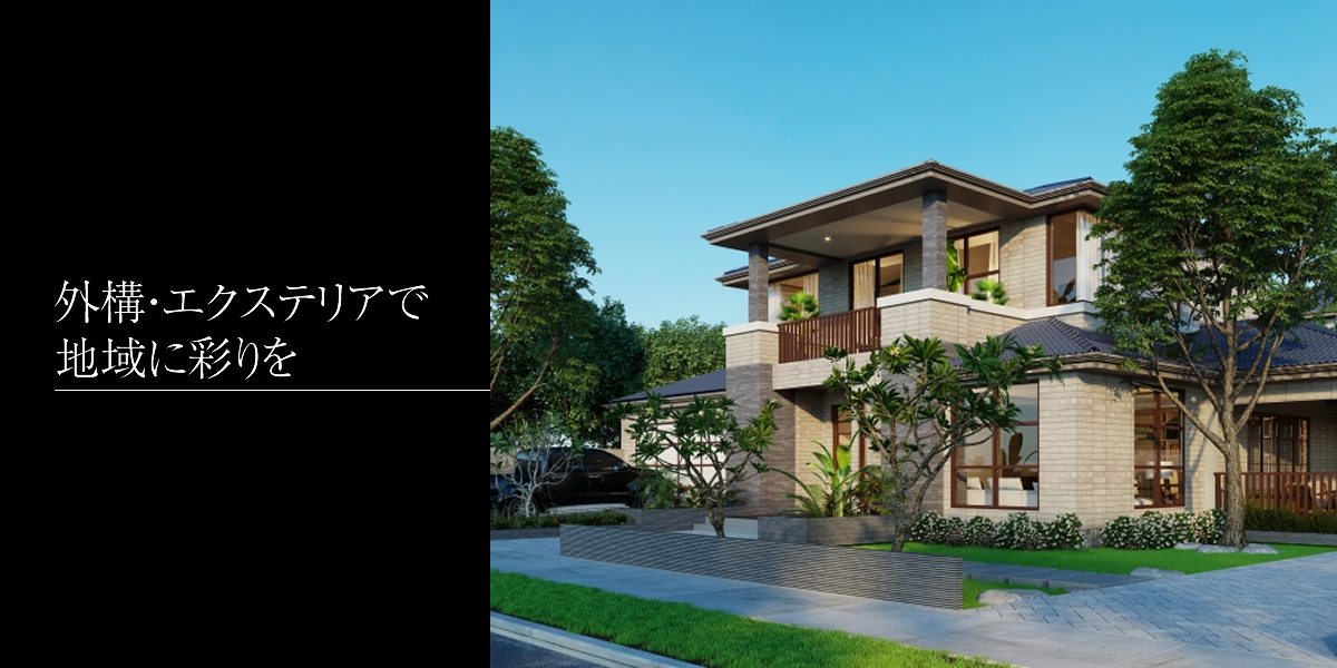 庭、植栽、門扉、アプローチ(道路・門から玄関までの通路)、フェンス、石垣、玄関前など屋外の手すり、スロープ、ウッドデッキ、駐車スペース、駐輪場、カーポート、ガレージ、ポスト、物置、倉庫などの「家の外に設置・整備するもの」の総称です。